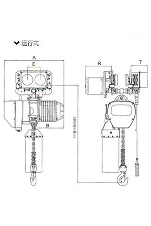 | 運(yùn)行式環(huán)鏈電動(dòng)葫蘆(0.25T-5T) 尺寸參考: | ||||||