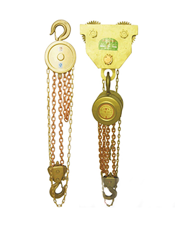 防爆手拉葫蘆以鋁青銅、鈹青銅作為毛坯,防爆手拉葫蘆外殼采用H62銅合金材料,其轉(zhuǎn)動齒輪經(jīng)過高溫熱處理從而達到齒輪據(jù)有很高的耐磨性。在作業(yè)中產(chǎn)品相互摩擦撞擊不會產(chǎn)生機械火花,在易燃易爆場所不引爆氣體,有效防止火災事故。